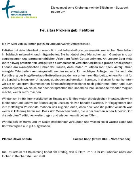 Evangelische Kirchengemeinde Billigheim - Sulzbach
